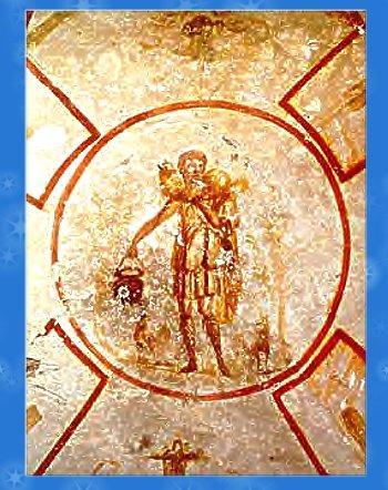 It is referred to as "The Good Shepherd". Sometime between 100-300 A.D., Roman Christians who were being persecuted by the empire chose to bury their dead in caves or catacombs outside of the city.