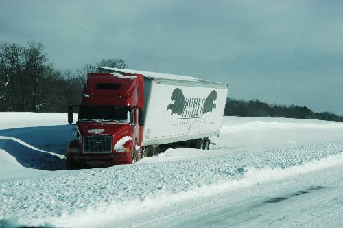 The first day of travel was not bad until the last hour or so, then the snow started. The second day was a disaster, as this first photo will show.