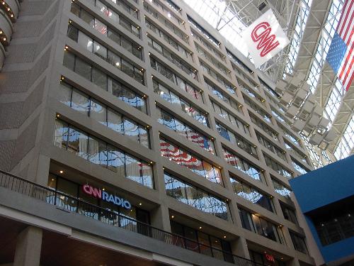 Flag reflection in the windows.