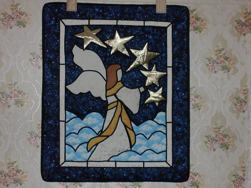Wall hanging my wife made, it's called stain glass quilting.