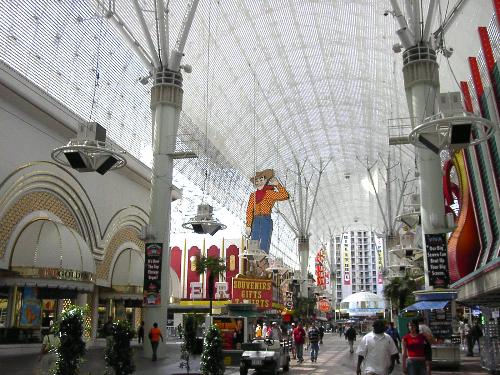 We are now back in Vegas, this is the down town area known as Fremont street day time. as you can see it's covered with a canapee that has lights on it later I will show you some night shots of it. |