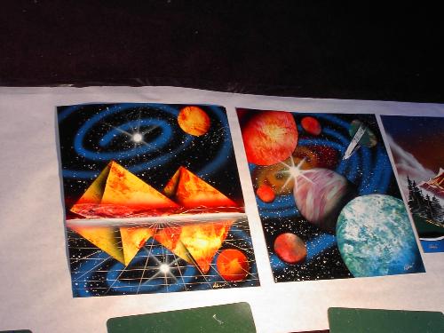 At the Freemont experence there are also street vendors and artist. This artist uses Acrylic aerosol spray cans puts several layers of paint then uses newpaper and carboard to make the paintings. |