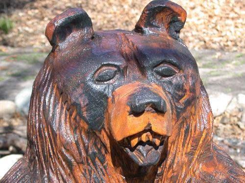For those who asked the Bear stands about 4 feet high After he was carved he weight about 150 lb. Total cost of having the carver come and put on his show was $800 He also brough the log witch was aged about five years drying out. |