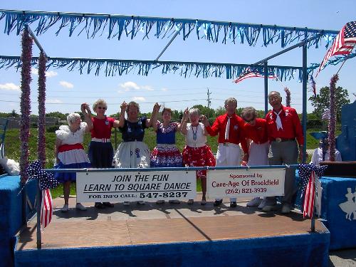 We had our Square Dance club picnic at our house yesterday July 3 that's why the bridge had to be finished. And on the fourth of July we danced in two parades on this float.