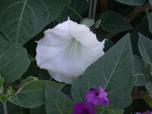 A walk around our house. This is the south side of the house and these are called Angel trumpets they bloom at night and last untill about noon. They bloom only one day per flower. |