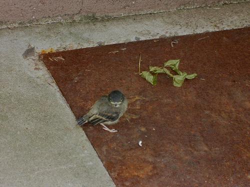 We were out geocaching with the kids and we ran across this baby bird, hiding behind a building at a rest stop.