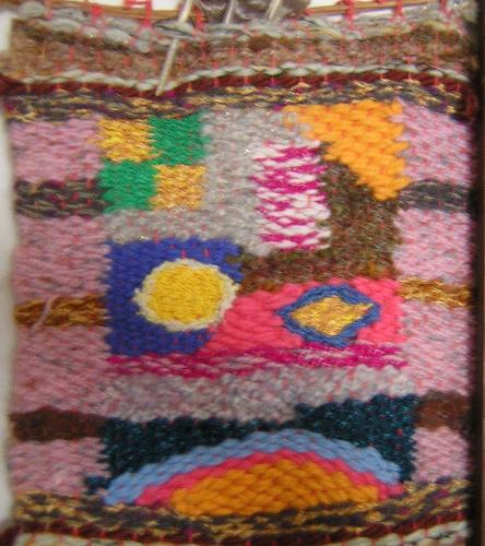 At one time in my life I taught weaving to older people. This is a piece of Marion Aber's work.