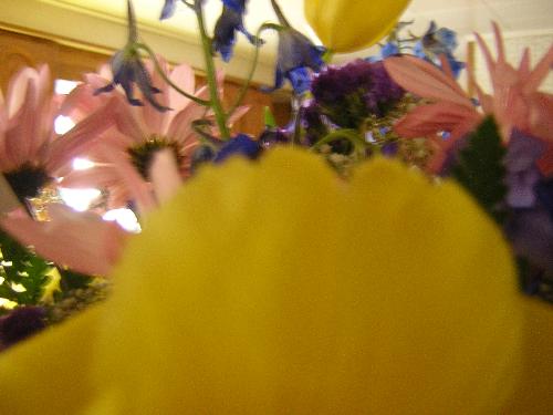I am using the flower adjustment on the camera with autofocus and room lighting for the picture today. I have found that it has enriched the colors. This makes the photo abstactions have more of a watercolor look to them. The contracts are remarkably stronger. |