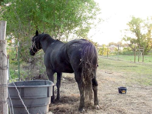 2030 Mountain Time Over the day he worked himself closer and closer to the horse water tank. Derrick was weedeating and saw him use to tank to help push himself up!