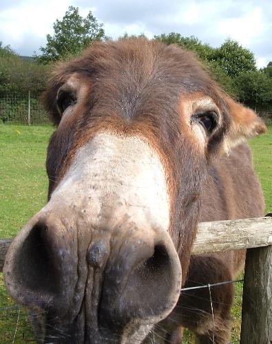 His ears were right back...He was protecting a pregnant donkey...
