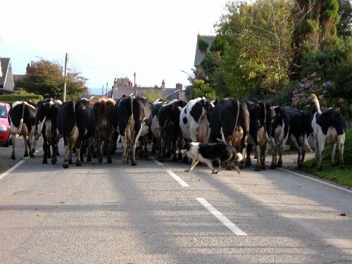 This dog was very clever at rounding up these cows...we were stuck behind while they went down the lane to be milked...