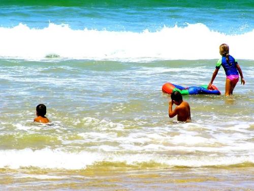 Children playing in the warm water.