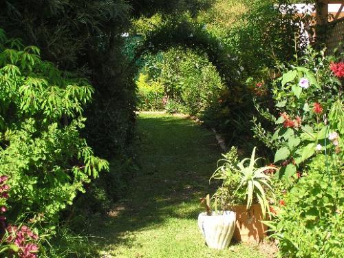 A bit of rain and hot sunshine and the jungle goes mad with growth. This is the side passage after clearing.Grows faster than the lawn.(old camera)