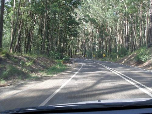 Moving along the highway to Bellingen. Gum trees.