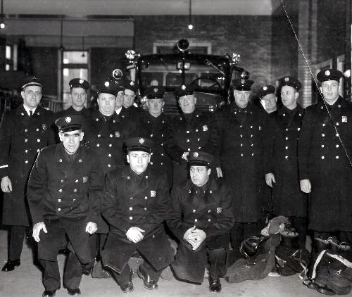 About 1955. My dad is in the middle of the front row. Engine 82 and Truck 42 fire house. My dad was James E. Voves Sr., I am James E. Voves Jr. and my son is James E. Voves III, all Chicago Fireman.