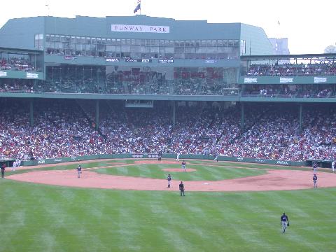 View from our bleacher seats at Fenway Park today. David Ortiz hit a homer down the first base line in the first inning. But we didn't see any action in deep center.