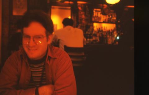 Kev, my good pal and the drummer in our nameless band. You know him. You love him. Well, you know him at least. This shot taken at the White Horse Tavern, NYC, in or around 1997, shortly after Kev moved to the city. We sat near the table where Dylan Thomas drank an amazing amount of whiskey shots before falling over dead. |