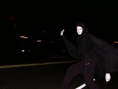 A Phantom roller blading the streets of Brooklyn, Halloween 2003.