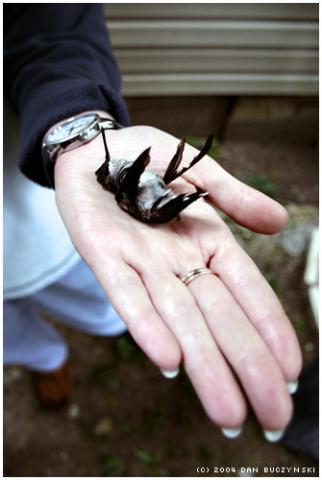 my brother-in-law (http://www.fotoamigo.com/Screendmon/) found this hummingbird in the grille of his jeep. he and his wife wendy (this is her hand) buried it.