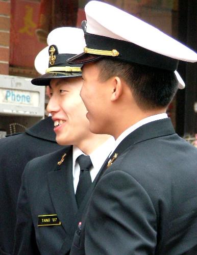 a squad of guys in very nice military dress were checking out the parade.