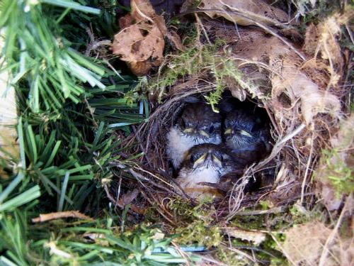 The baby wrens are as big as their mother. There are 5 in the little nest. They should be leaving soon.