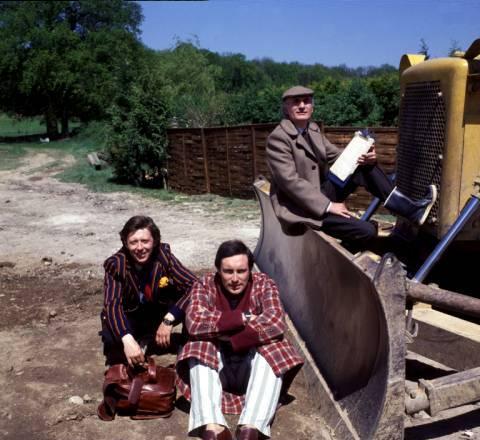 The charccters name is Arthur Dent whose house is about to be destroyed to make way for a freeway. Ford Prefect, who is standing behind him, tells him to forget about his house because the Earth is about to be destroyed to make way for an inter-galactic freeway. This was a BBC series based on the Doug Adams book "Hitch-hikers Guide to the Galaxy" whose cover had the words "DON'T PANIC". Very funny book. A laugh on every page. |