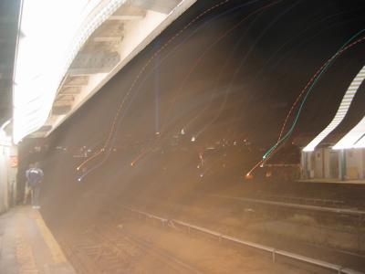 WTC memorial lights from elevated subway platform